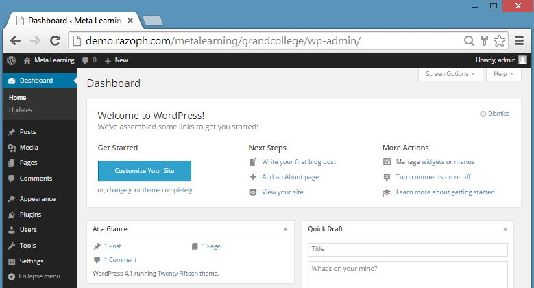 Layari URL WordPress anda cth http:// … /grandcollege/wp-admin/install.php