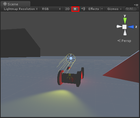 8) To attach the spotlight and pointlight to the MoonMachine, select the items and drag them to the MoonMachine group in the Hierarchy Panel.